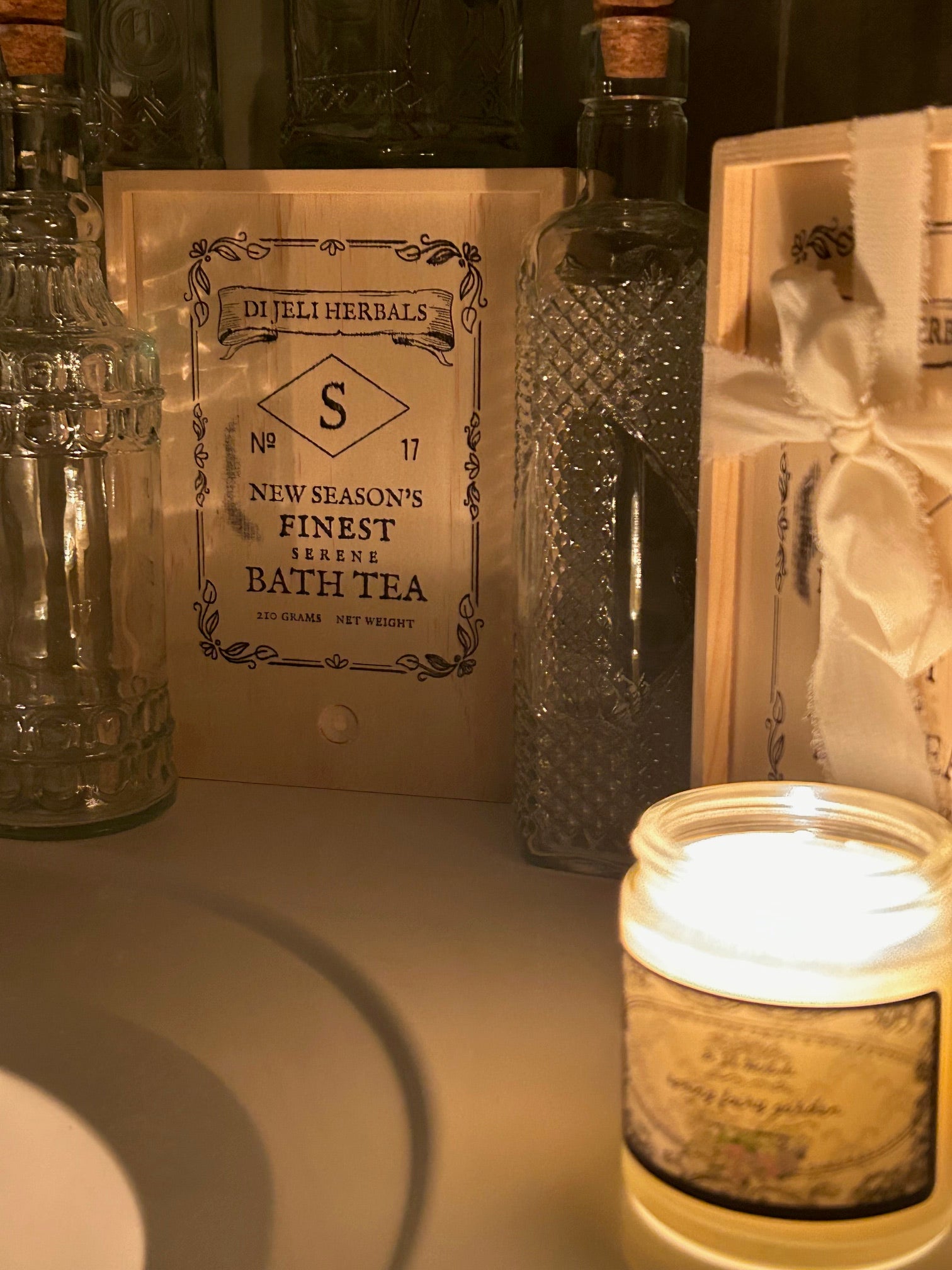 Serene Herbal Milk Bath, Antique-Style Tea Crate